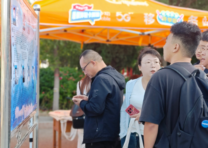 主动上前与新生及家长交流