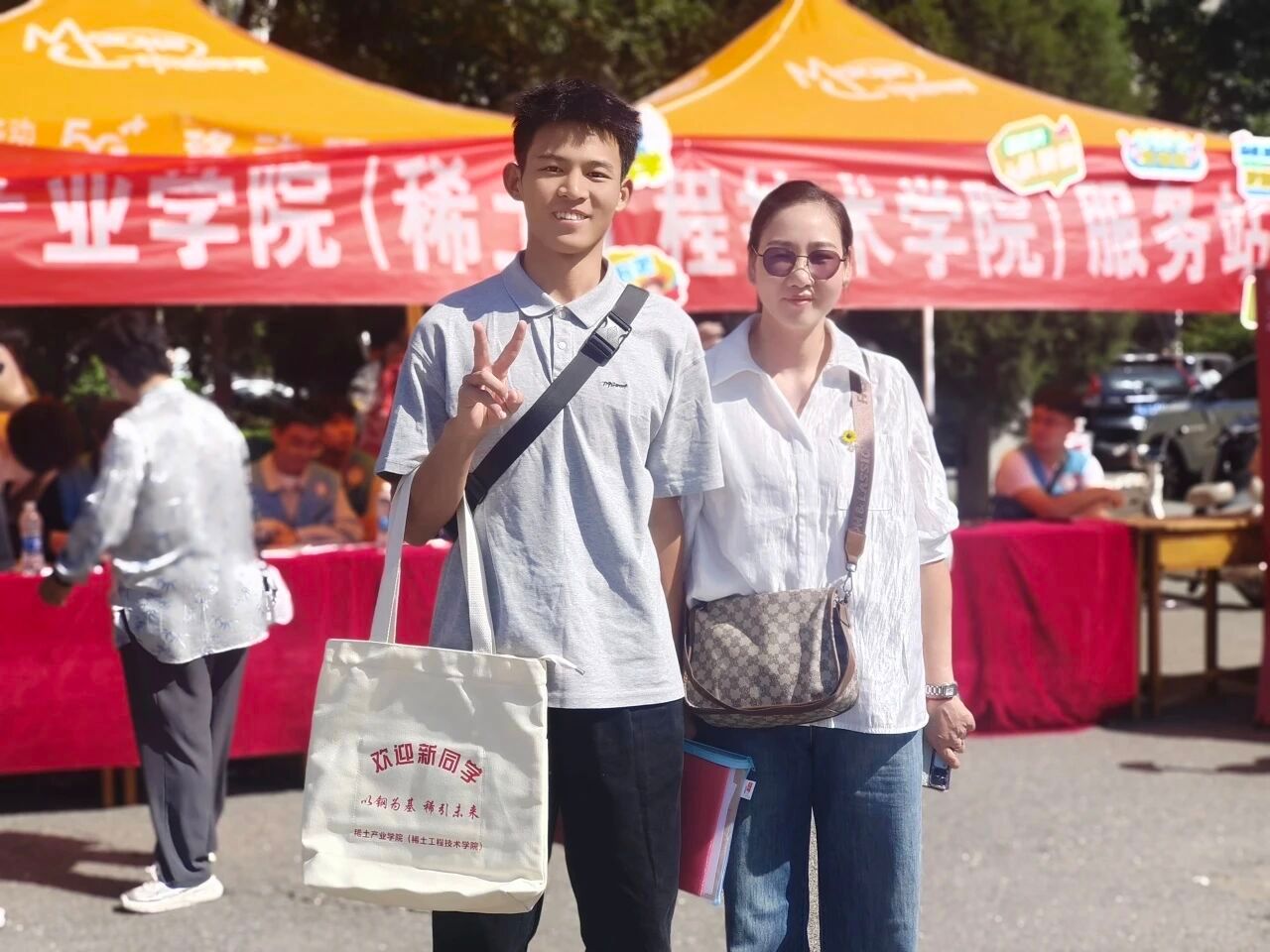 学生志愿者面对新生及家长