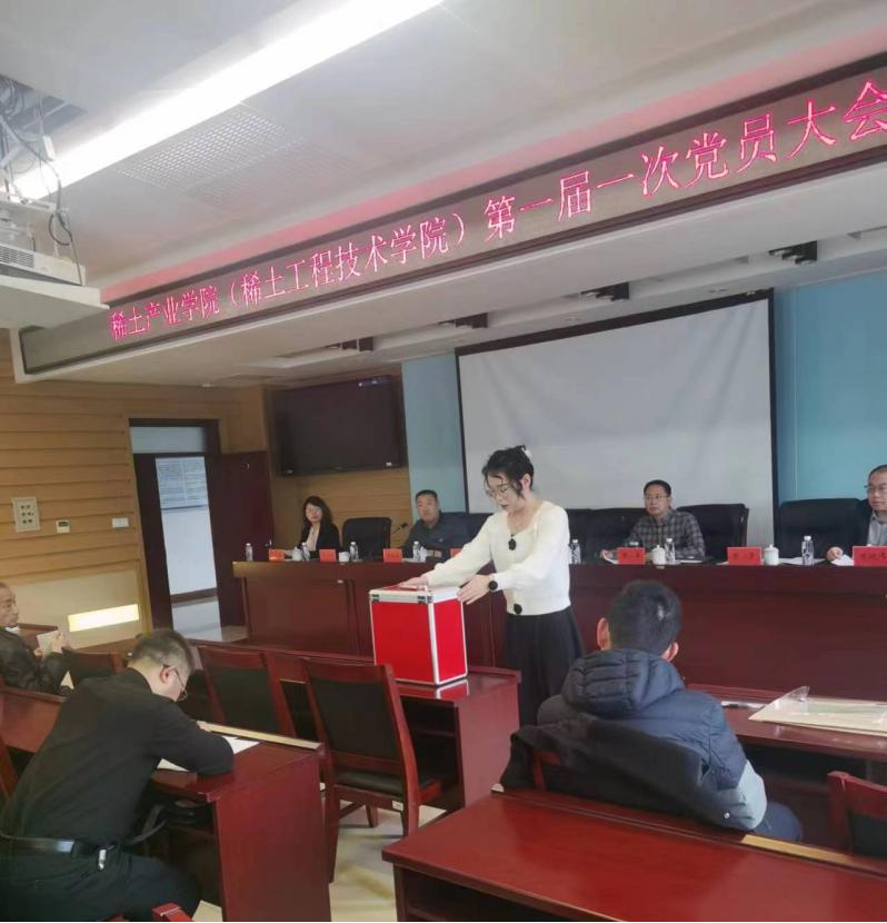 大会审议通过了学院党总支委员选举办法、委员候选人名单、监票人和计票人名单。按照选举规定和程序,以无记名投票、差额选举的方式,选举产生了稀土产业学院(稀土工程技术学院)第一届党总支委员,并进行了党总支委员会第一次全体会议,选举产生了党总支负责人。