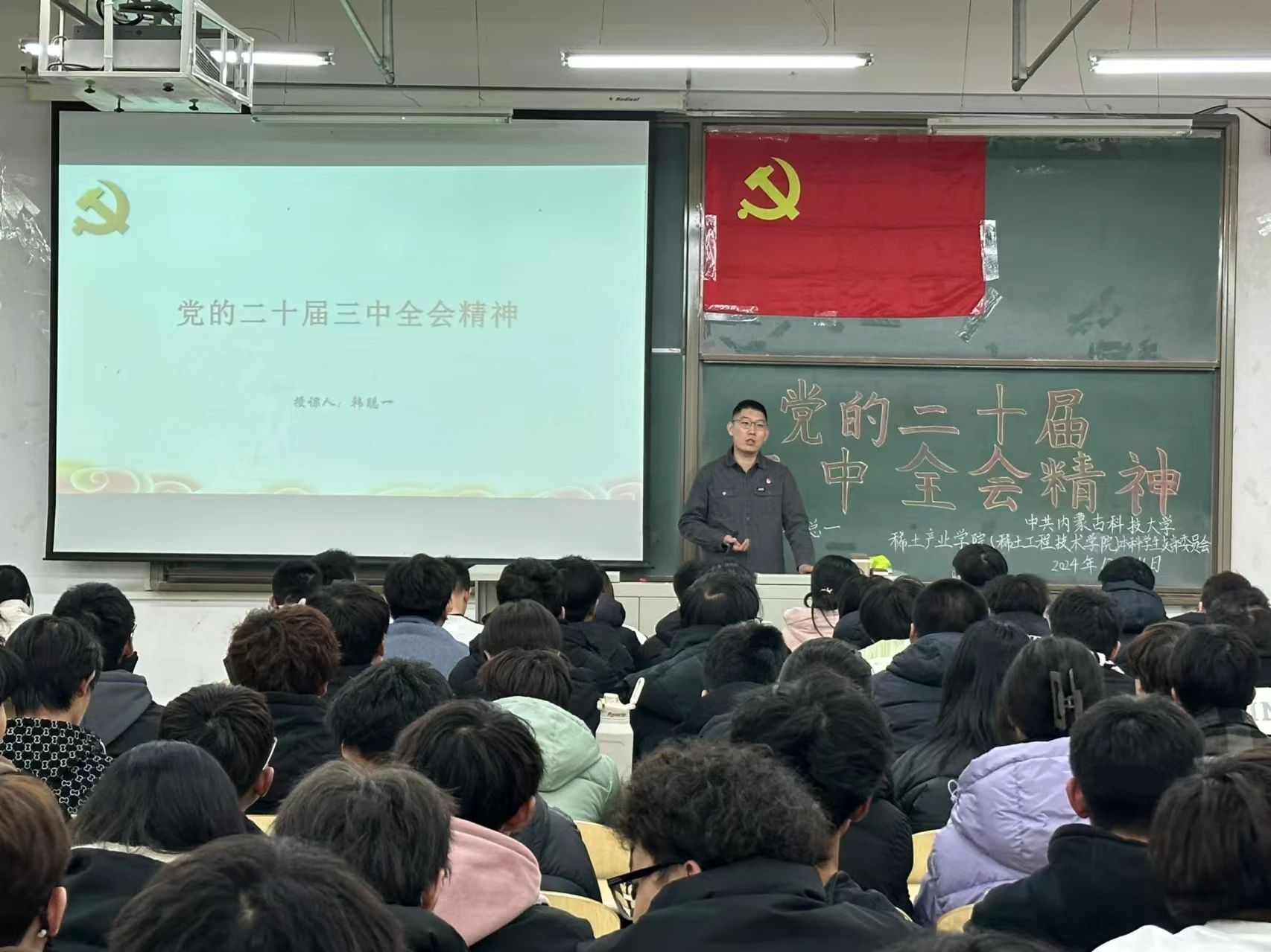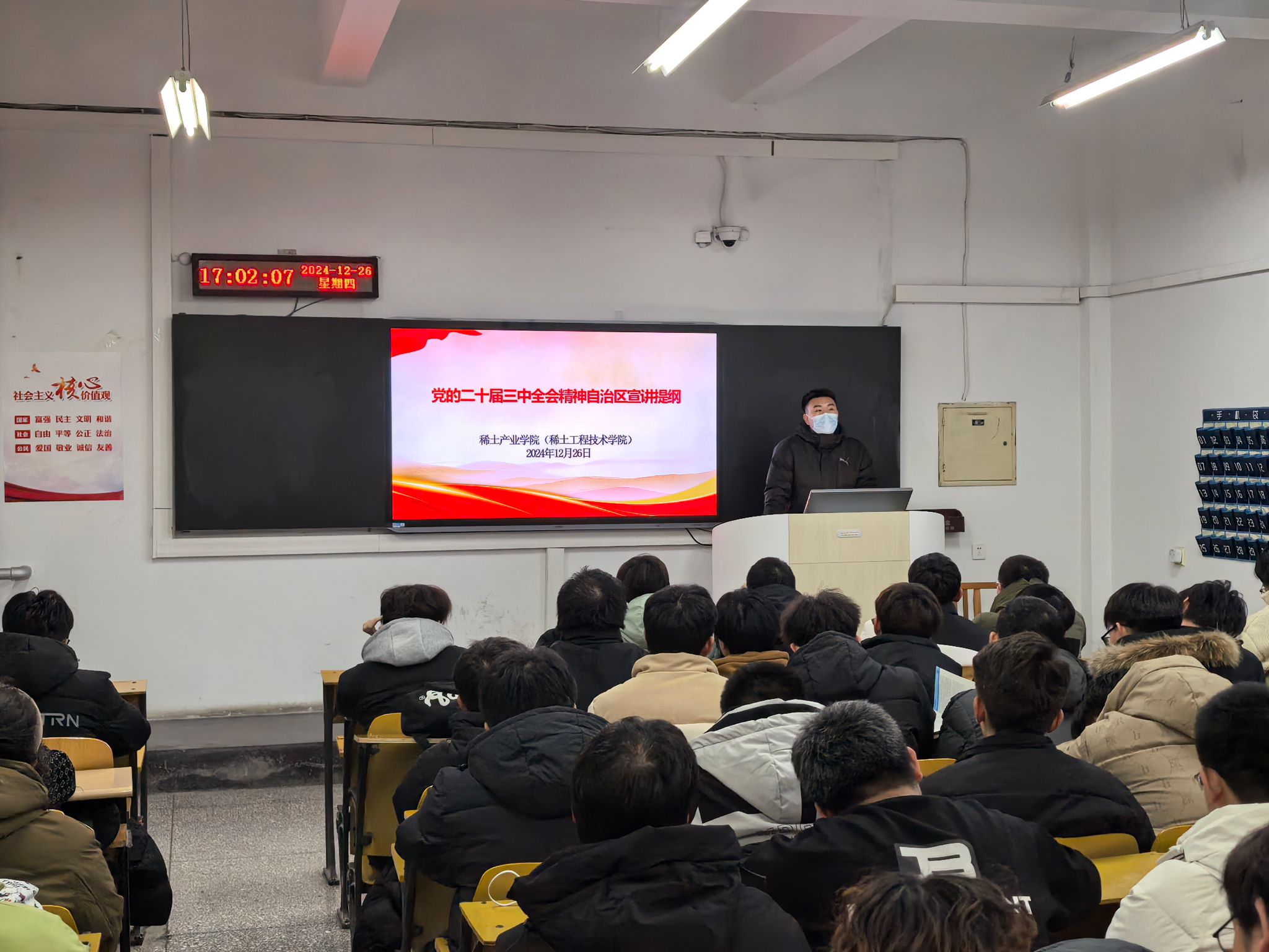为持续深入学习领会党的二十届三中全会精神,引导在校学生深刻领会全会的重大意义和丰富内涵,切实把全体学生的思想和行动统一到全会精神上来,根据校党委及院党委安排部署,我院宣讲团成员面向本学院全体学生开展党的二十届三中全会精神宣讲。