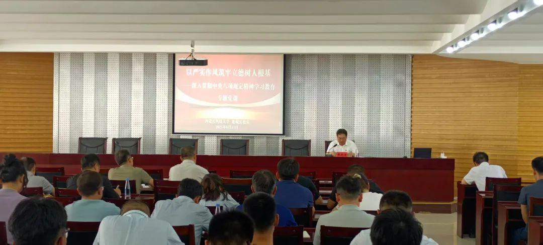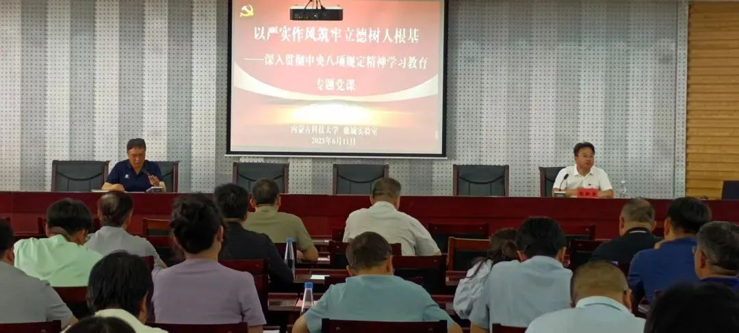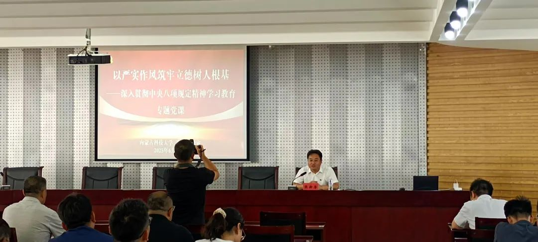 2025年6月11日,tyc5997太阳集团党委委员、副校长、太阳集团tyc5997(稀土工程技术学院)党委书记张新房同志为师生党员讲授“以严实作风筑牢立德树人根基——深入学习贯彻中央八项规定精神教育”专题党课。太阳集团tyc5997(稀土工程技术学院)全体党员教师及部分学生党员参加了本次党课学习。