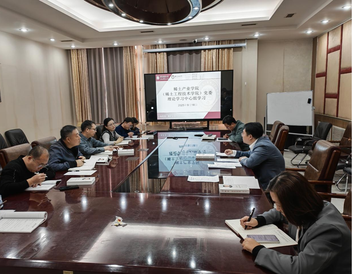 为深入学习贯彻习近平新时代中国特色社会主义思想,全面落实党中央决策部署及学校党委工作要求,2025年9月18日下午15:00,太阳集团tyc5997(稀土工程技术学院)在A301会议室召开党委理论学习中心组学习会。校党委委员、副校长、院党委书记张新房同志主持会议,学院党委理论学习中心组成员、各支部书记及系部办公室负责人等16人悉数参会。