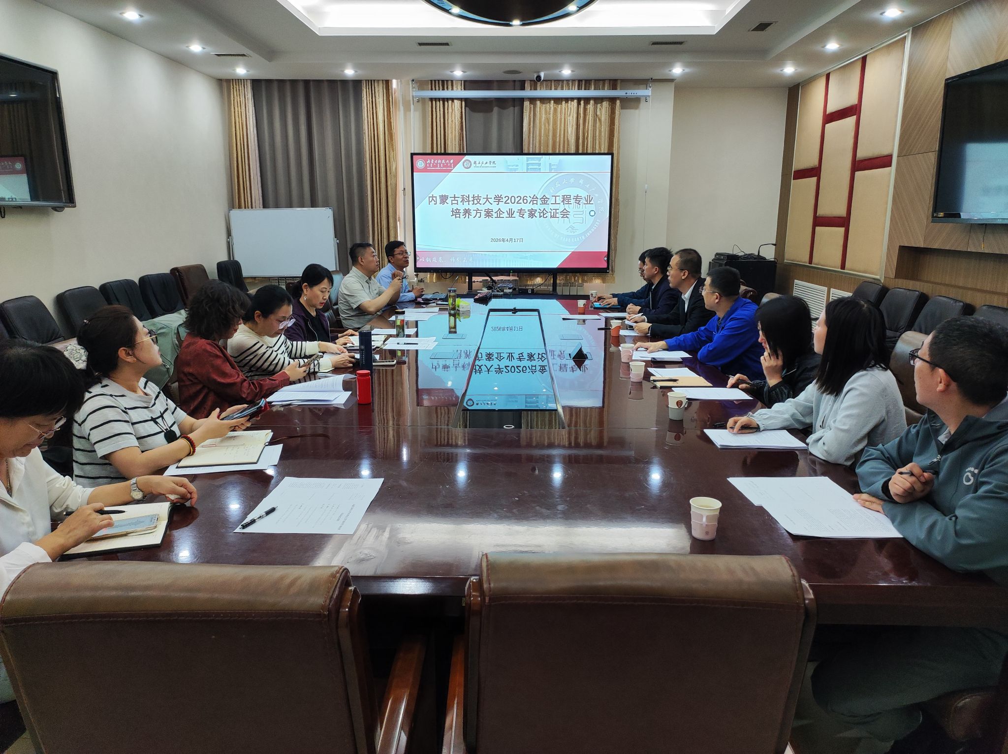 4月17日上午,tyc5997太阳集团2026版冶金工程专业培养方案企业专家论证会在太阳集团tyc5997A301会议室召开。本次会议由冶金工程系主任辛文彬主持,学院教学副院长冯佃臣、包头市冶金工程领域企业专家及专业教师共同参会。