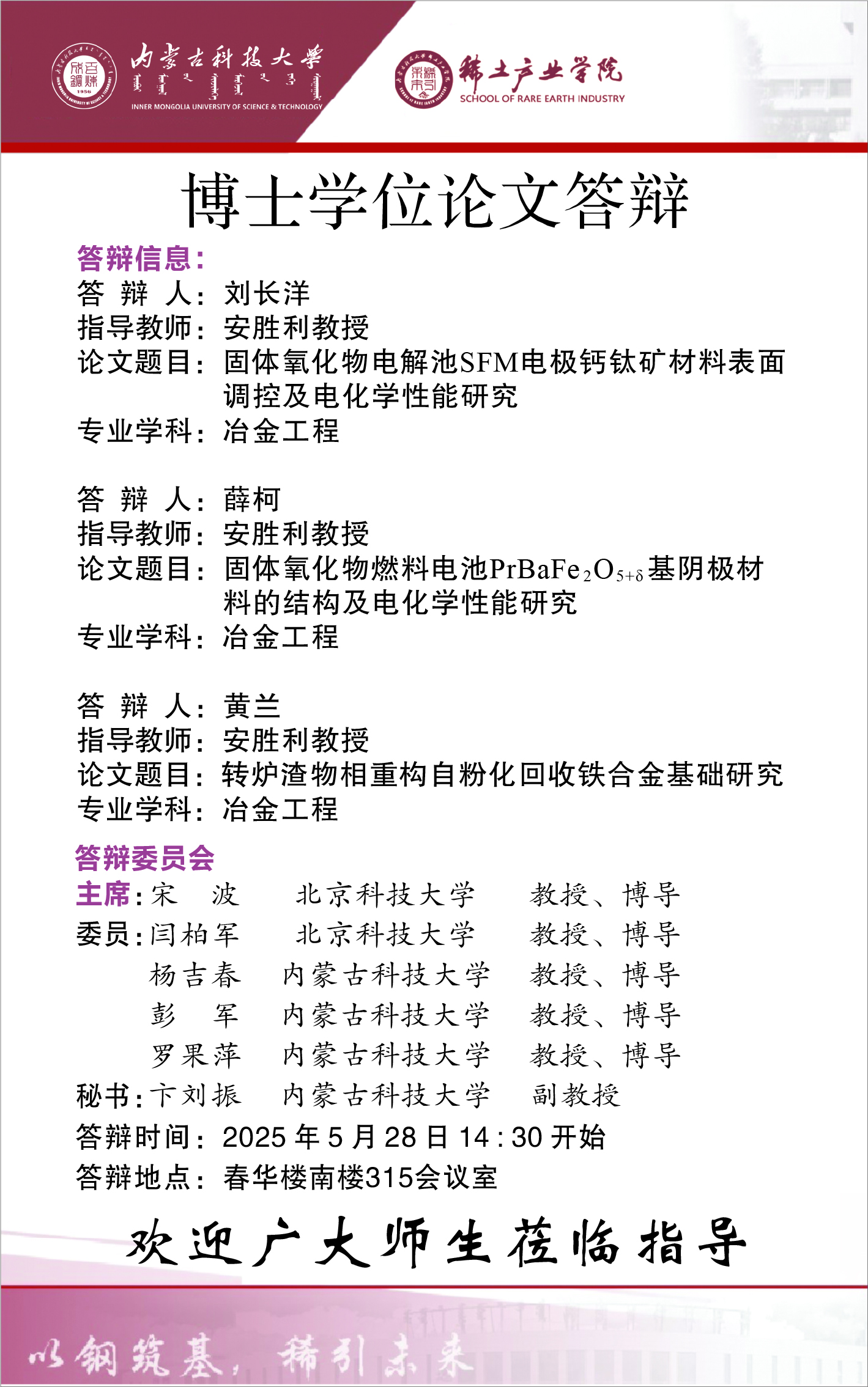 上一条:太阳集团tyc5997(稀土工程技术学院)推荐2026届优秀应届本科毕业生免试攻读硕士学位研究生工作实施细则 》 下一条:博士学位论文答辩公告